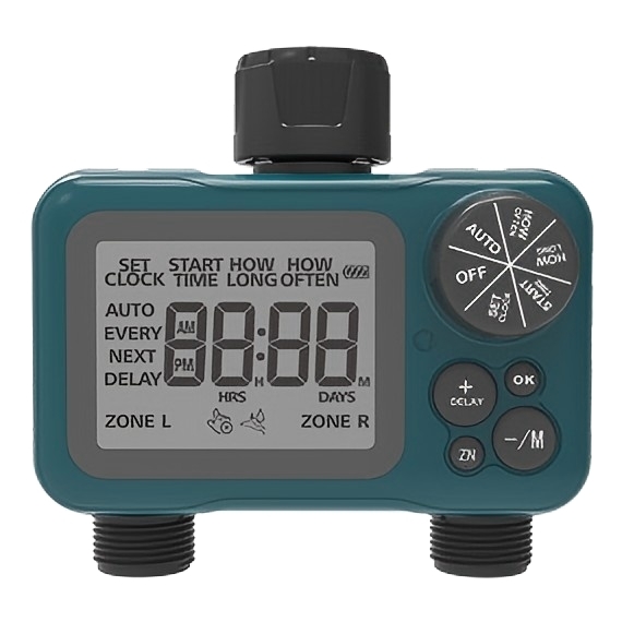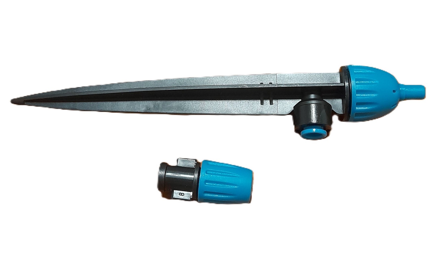 - Cabezal Ajustable de Estaca: El tapón giratorio permite regular el caudal de agua; desde goteo lento hasta chorro pequeño.